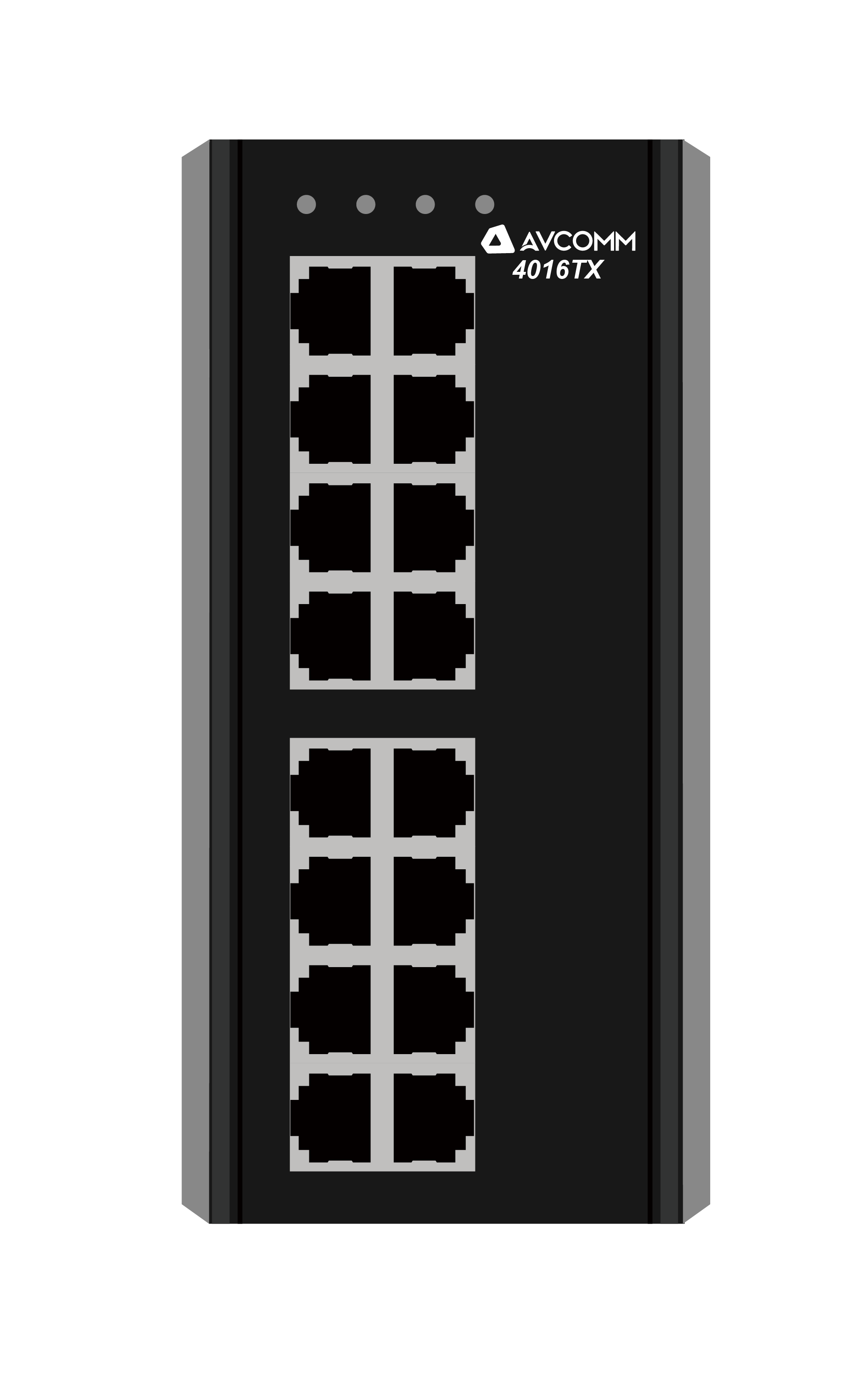 AVCOMM 4016TX is 16-port 10/100/1000Base-TX RJ-45 unmanaged Ethernet switch with reverse polarity protection of AC or DC input. It is highly scalable and can transmit data over long distances through fiber-optic ports. It has wide operation temperature range, high anti-EMI capability to ensure stable work in harsh industrial environments and supports DIN Rail-mounted to facilitate in various industrial network applications.