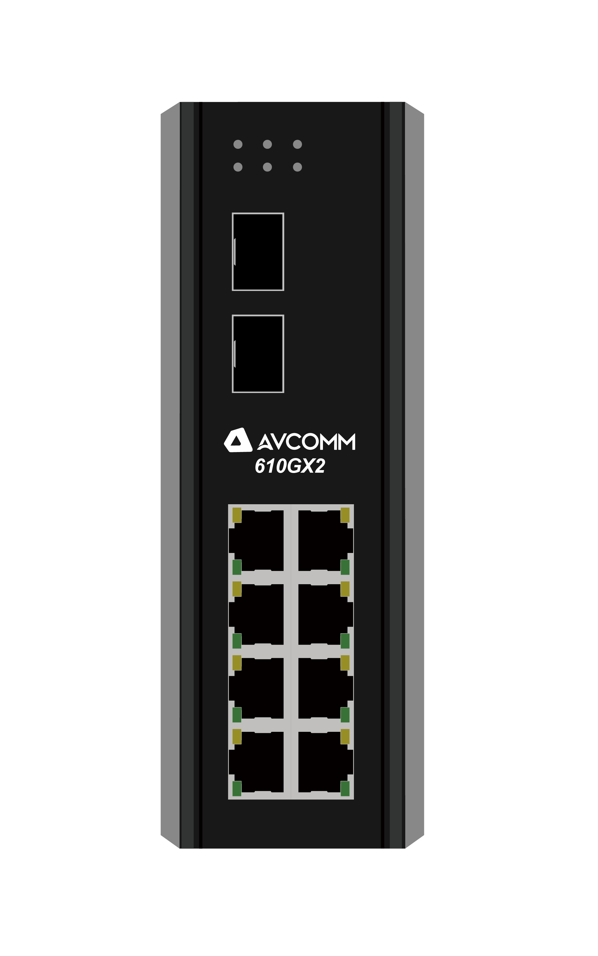 AVCOMM 610GX2 is managed Industrial Ethernet Switch which provide eight 10/100baseTX ports, two 1000Base-X ports and one console port. It supports CLI management and Ethernet layer-2 protocol to ensure the stability of the data transmission. Fanless design with low power consumption and high anti-EMI capability enable the stable operation in harsh industrial environments. AVCOMM 610GX2 supports DIN Rail-mounted/wall-mounted to facilitate in various industrial network applications.