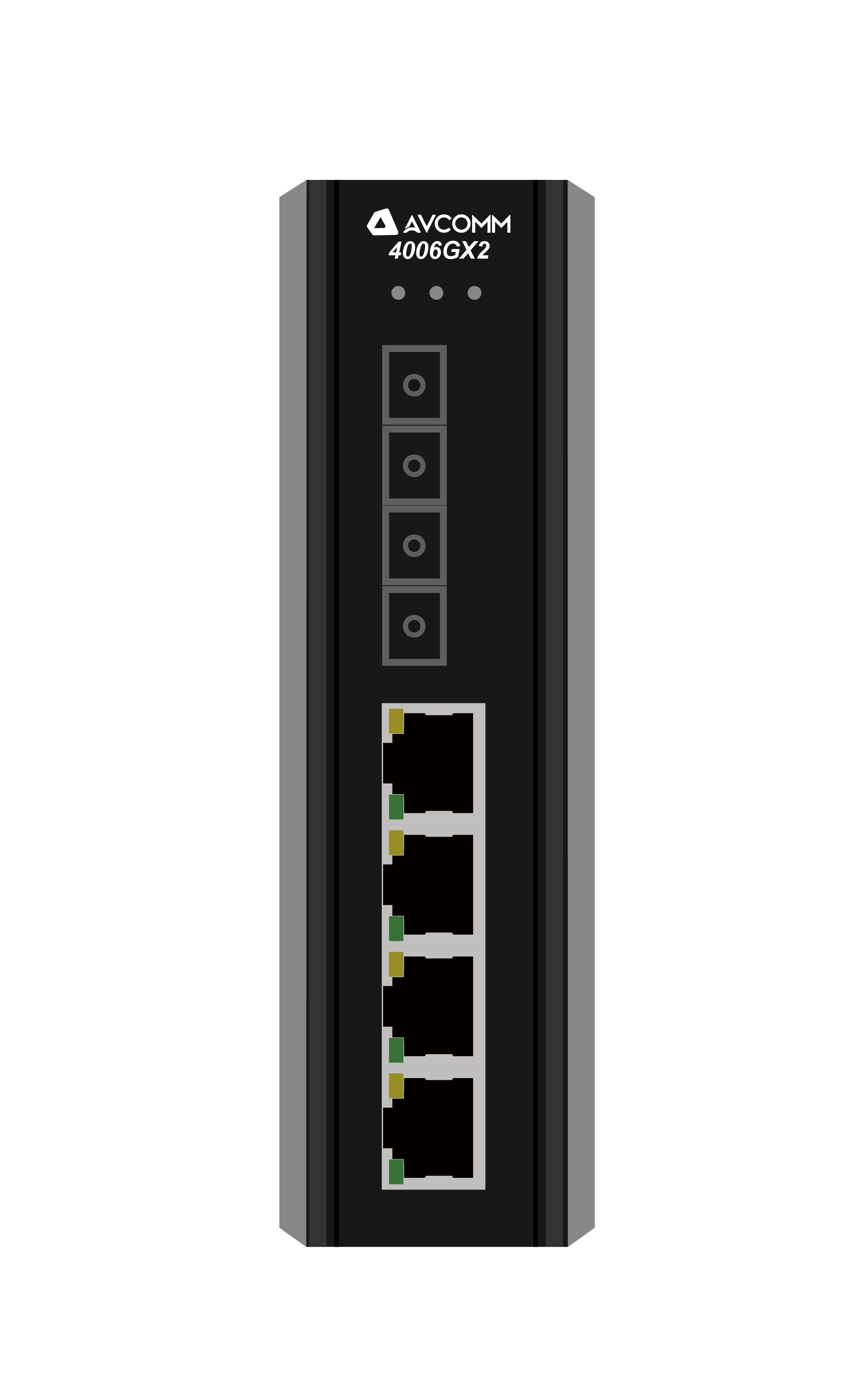 AVCOMM 4006GX2 is 4-port 10/100/1000Base-TX RJ-45 and 2-port 1000Base-X unmanaged Ethernet switch with reverse polarity protection of AC or DC input. It is highly scalable and can transmit data over long distances through fiber-optic ports. It has wide operation temperature range, high anti-EMI capability to ensure stable work in harsh industrial environments and supports DIN Rail-mounted/wall-mounted to facilitate in various industrial network applications.