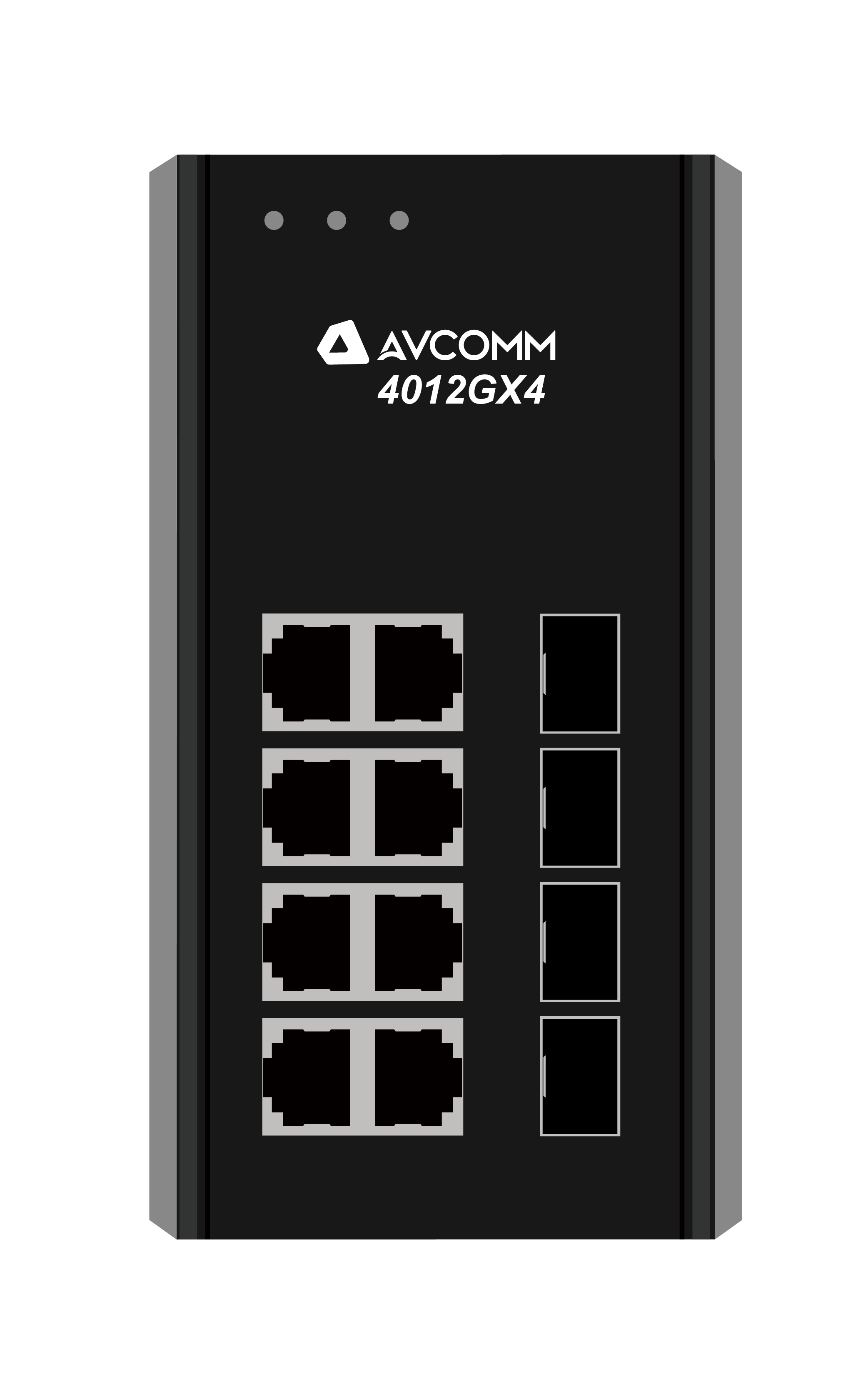 AVCOMM 4012GX4 is 8-port 10/100/1000Base-TX RJ-45 and 4-port 1000Base-X unmanaged Ethernet switch with reverse polarity protection of AC or DC input. It is highly scalable and can transmit data over long distances through fiber-optic ports. It has wide operation temperature range, high anti-EMI capability to ensure stable work in harsh industrial environments and supports DIN Rail-mounted to facilitate in various industrial network applications.