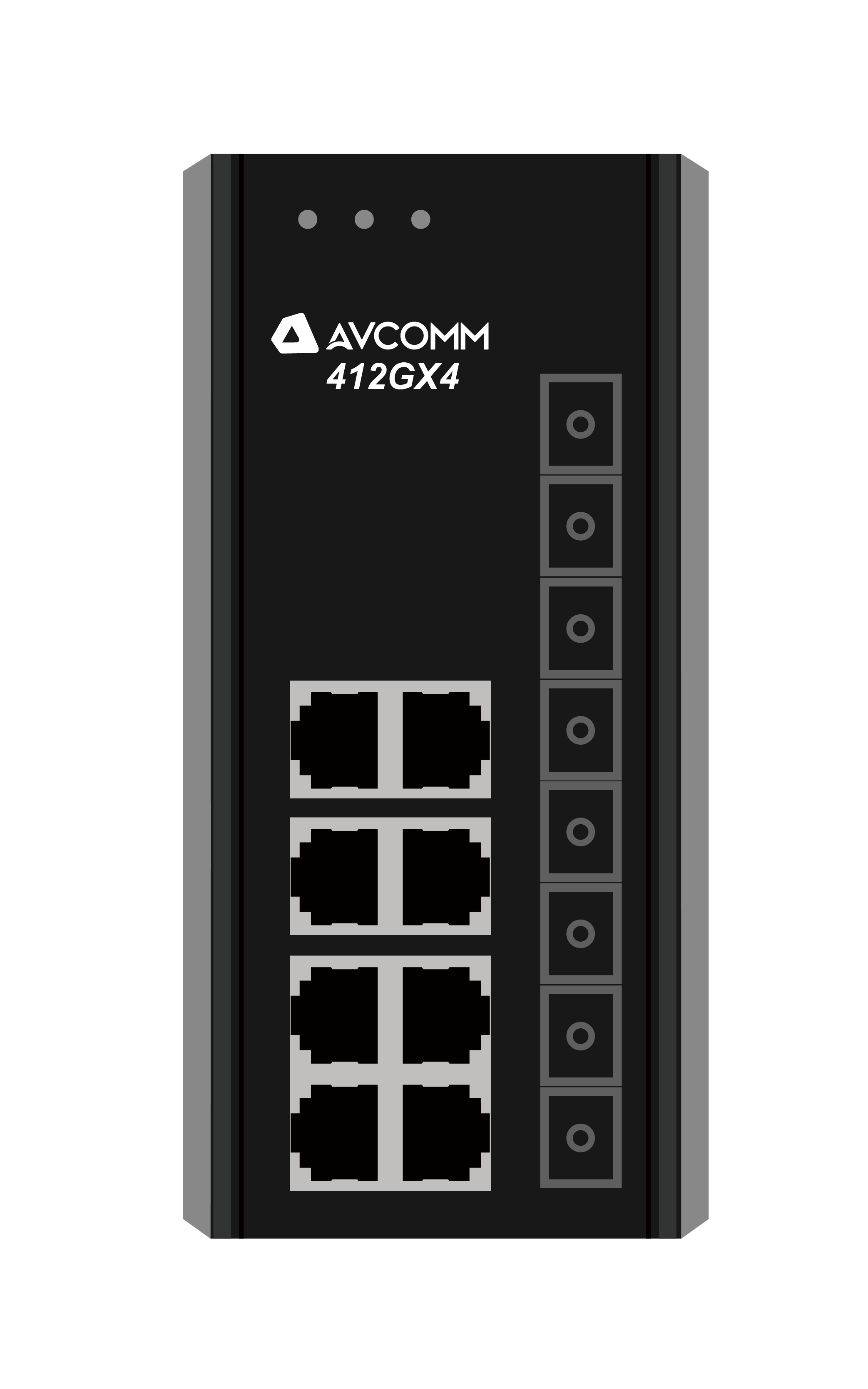 12-Port Industrial Unmanaged Ethernet Switch, 8 RJ45 10/100BaseT(X), 4 1000BaseFX (Singlemode, SC style connector, 80Km) , DIN-Rail, Dual Power Input 90-264VDC, -40°C-85°C